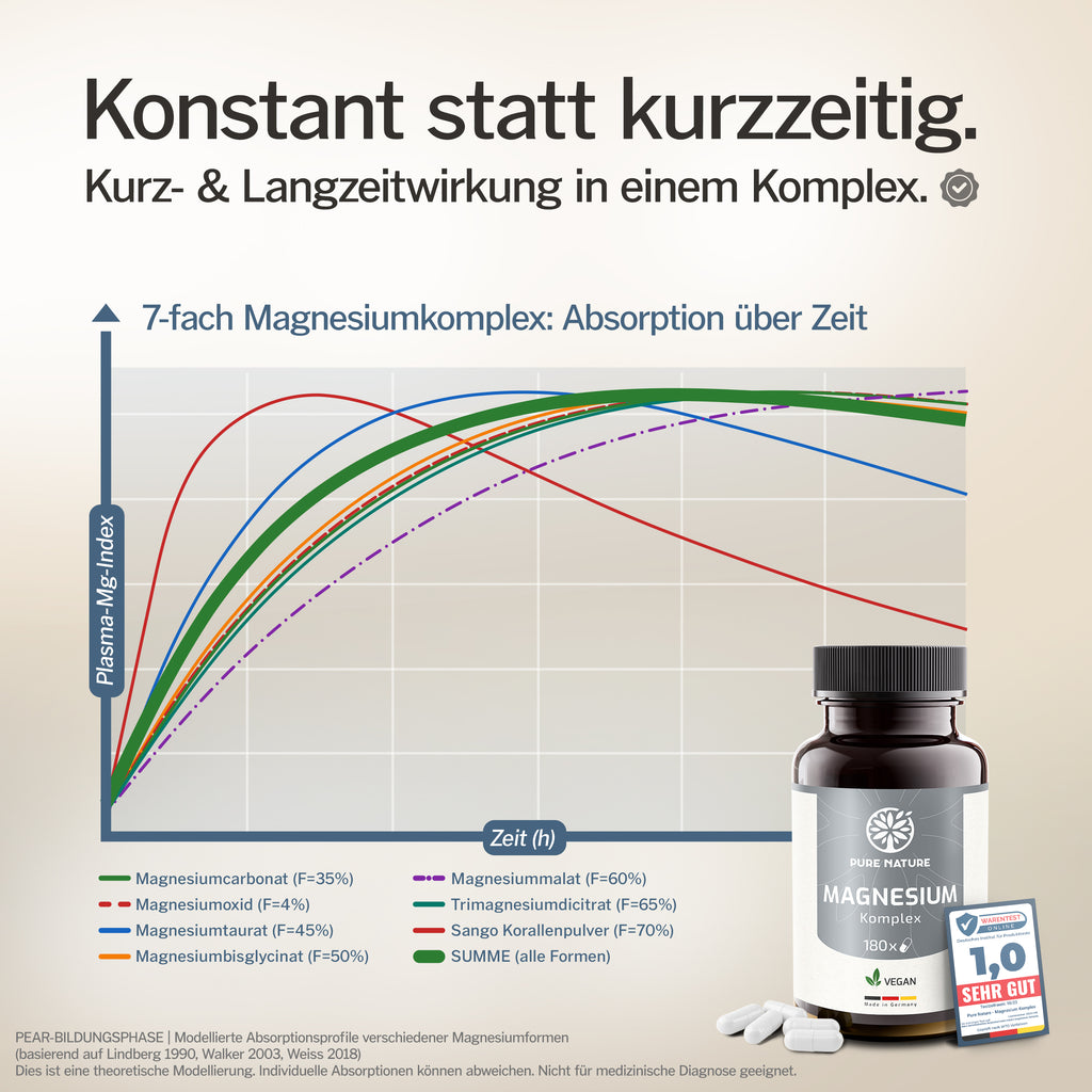 ( 140,29 € / 1kg )- 𝐌𝐀𝐆𝐍𝐄𝐒𝐈𝐔𝐌 𝐊𝐎𝐌𝐏𝐋𝐄𝐗: Unsere Magnesium Kapseln enthalten eine Kombination aus sieben verschiedenen Magnesiumverbindungen mit unterschiedlichen Löslichkeits- und Bioverfügbarkeitseigenschaften. Die Magnesiumformen ergänzen sich zu einer vielseitigen und ausgewogenen Zusammensetzung.